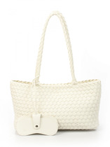 Сумка плетеная выполнена из экокожи. Детали: 2 ручки 60 см. Сумка имеет 1 отделение, закрываемое на магнит. В комплекте фирменный пыльник для хранения сумки, чехол для очков, косметичка. Внутри косметички: 1 отделение на молнии, 1 карман на молнии, 1 открытый карман. Особенности косметички: брендированная подкладка из хлопка, брендированная фурнитура серебристого цвета.