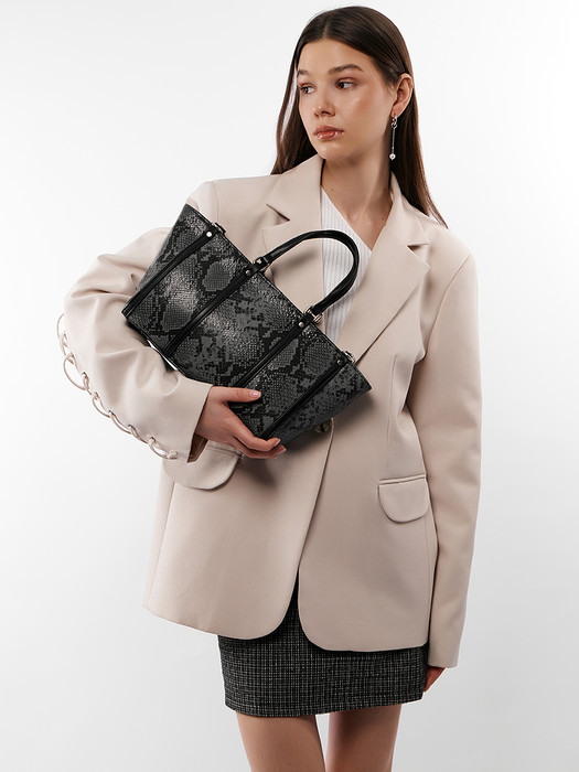 Сумка женская выполнена из экокожи. Детали: 2 короткие ручки по 30 см, 1 длинный регулируемый ремешок на плечо 120 см. Внутри изделия: 1 отделение на молнии, 1 карман для документов на молнии, 1 открытый карман. Брендированная подкладка из хлопка. Металлическая брендированная фурнитура серебристого цвета. В комплекте фирменный пыльник.