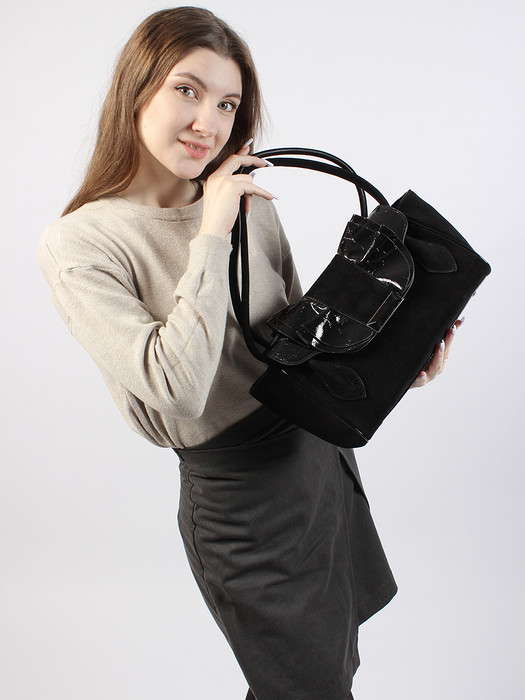 Совместные закупки Екатеринбург Женские аксессуары Сумки — LACCOMA сумка Y2430-1-черный натуральная замша, натуральная кожа полиэстер