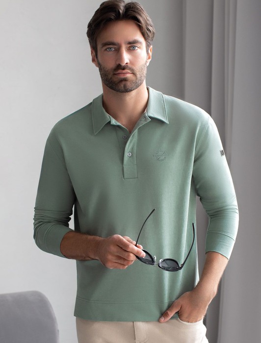 Состав: 95%Хлопок 5%ПУ Плотность: 240 Г/м2 Размер товара на первом фото: 42Стильный лонгслив светло-оливкового цвета с воротником поло выполнен из премиального хлопка в сочетании с эластаном . Натуральная ткань обеспечивает легкость, воздухопроницаемость и приятные тактильные ощущения даже когда жарко, позволяет не перегреваться и поддерживает комфортный микроклимат в течение всего дня. Удобный отложной воротник на аккуратных пуговицах делает образ современным и стильным, а длинный рукав защищает руки при ветреной погоде. Поло хорошо садится по фигуре благодаря добавлению эластичных волокон — такой вариант подходит для мужчин любого роста и размеров, не стесняет движений и создает ощущение свободы и легкости.