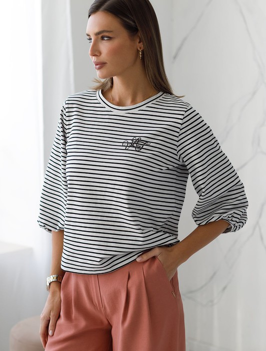Лонгслив в полоску с рукавами-буфами из премиального хлопка с эластаном