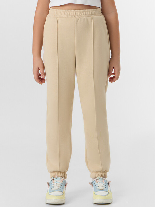 Брюки из трикотажного футера с подчесом. Силуэт свободный, на передних половинках обработаны карманы с наклонным входом. Пояс с эластичной тесьмой внутри. Низ штанин – с эластичной тесьмой, отвернут. Отличная модель для девочки!