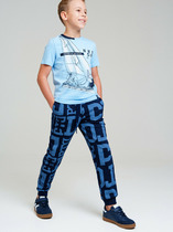 Брюки для мальчиков. Без бокового шва. Карманы в вытачке. Пояс отрезной с внутренней эластичной тесьмой 50RV. Пояс прострочен двумя отделочными строчками. Внутри в пояс втянут шнур 8 PX-2 . Низ брюк обработан манжетами из рибаны.