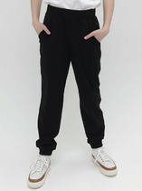 Нижние срезы обработаны в подгибку с эластичной тесьмой внутри 30RV. По бокам настрочены лампасы.