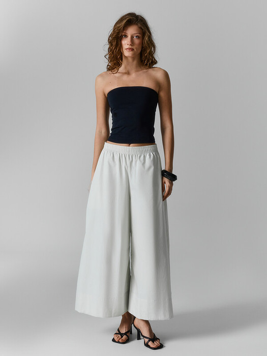 Брюки Свободного силуэта, расклешенные. Пояс цельнокроеный с резиной внутри 40RV. В боковых швах карманы в рамку. Низ впогибку.