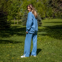 Брюки изготовлены из трикотажного полотна футер. Брюки свободного силуэта. Сиденье немного спущено. В боковых швах обработаны карманы. Подкладка карманов из кулирки.