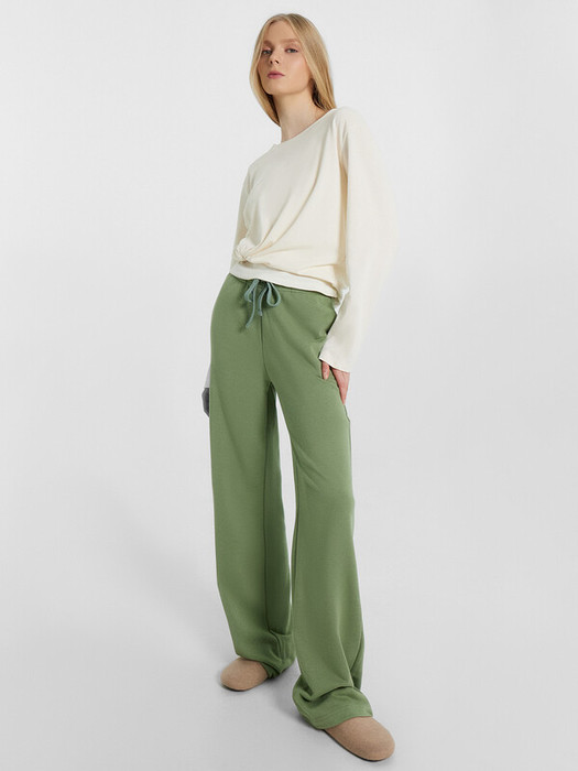 Брюки прямые свободные. Посадка средняя. Пояс цельнокроеный с эластичной тесьмой внутри. С внешней стороны пояса пробиты петли и втянут шнур. В боковых швах обработаны карманы. Подкладка карман из основного полотна. Нижние срезы обработаны швом вподгибку.