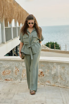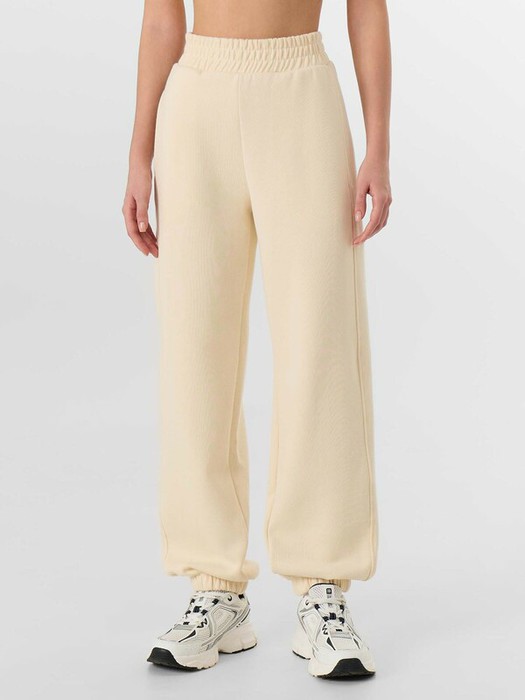 Брюки джогеры из трикотажного полотна. Пояс отрезной, с элатичной тесьмой внутри (60мм внутр. 60RV). По поясу проложены отделочные строчки. Боковые швы смещены в сторону переда. В боковых швах обработаны карманы. По низу джогеров подгибка с эластичной тесьмой внутри.
