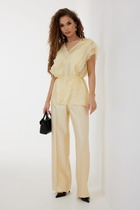 Женские брюки прямого свободного силуэта — это идеальный выбор для тех, кто ценит непринужденный стиль и комфорт в повседневной жизни. Средняя посадка обеспечивает удобную посадку по талии, а эластичный пояс мягко фиксирует изделие, подстраиваясь под индивидуальные особенности фигуры без ощущения сдавленности. Боковые карманы, спрятанные в швах, добавляют функциональности, не нарушая лаконичность дизайна. Нижние срезы аккуратно обработаны швом в подгибку, что придает завершенный вид и способствует сохранению формы изделия после стирок. Изготовленные из вискозы, брюки отличаются мягкостью, легкостью и хорошей воздухопроницаемостью. Ткань красиво драпируется, создавая плавные линии и ощущение легкости при движении. Универсальная модель, которая отлично сочетается с футболками, рубашками или свитшотами — прекрасный базовый элемент как для домашнего образа, так и для прогулок в теплую погоду.