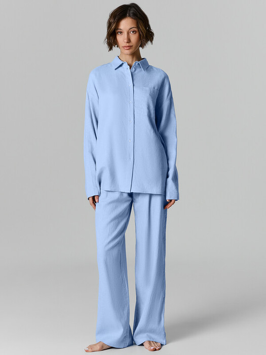 Женские домашние брюки свободного силуэта — это сочетание удобства и естественного стиля для уютных домашних образов. Они выполнены из натурального льна и вискозы. такое сочетание материалов подарит легкость, мягкость и воздухопроницаемость, идеально подходя для домашнего гардероба. Свободный крой позволяет чувствовать себя непринужденно, обеспечивая максимальную свободу движений. Эластичный пояс с кулиской добавляет комфортную посадку и возможность регулировки, а боковые карманы делают модель практичной и функциональной. Низ изделия обработан швом вподгибку, что обеспечивает аккуратность и долговечность. Для создания стильного домашнего комплекта вы можете дополнить брюки рубашкой из этой же коллекции. Такой комплект обеспечит уют и гармоничный образ для комфортного отдыха!