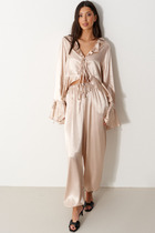 Кожаные брюки - один из наиболее практичных элементов осеннего гардероба! Поэтому наша коллекция не обошлась без стильных брюк из искусственной кожи, отличающиеся высоким качеством, а также стойкостью к растрескиванию и износу. Прямой крой, высокая посадка, удобные боковые карманы и эластичный пояс со шнурком обеспечивают идеальную посадку и комфорт в носке. В этих стильных брюках из искусственной кожи от Mark Formelle вы будете чувствовать себя уверенно и стильно в любой ситуации!
