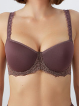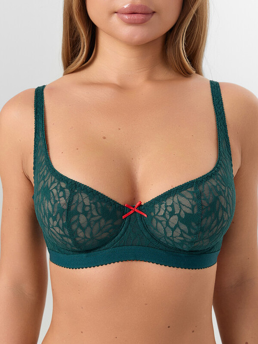 Бюстгальтер женский с мягкими чашками, 50 тип каркаса, выполнен из эластичного кружевного полотна. Чашка с вертикальным рельефом и уступом, переходящим в бретель. Верхний и боковой срезы чашки обработаны эл тесьмой 8 мм (с зубом KTE6-8, артекс E2298 или девсел 1311-О-09К) в один прием. Ластовица и деталь стана на подкладке из монокапрона. Бочки отрезные из кружевного полотна. В бочках пластины.
