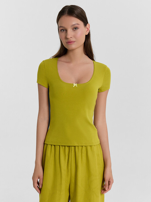 Джемпер прилегающего силуэта. Горловина овальная, глубокая. По краю горловины настрочена эластичная тесьма (с зубом 8 мм (06/08) КТЕ6-8). Рукава втачные короткие. Нижние срезы джемпера и рукавов обработаны швом вподгибку.