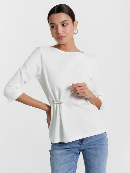Легкий джемпер из трикотажного полотна кулирного переплетения. Длина до середины бедра, силуэт полуприлегающий, горловина круглой формы, рукава длиной 3/4. Актуальный крой и универсальность поможет вам собрать современный образ, приложив минимум усилий.