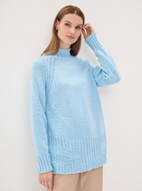 Низ джемпера фигурный, перед длиннее спинки. Низ окантован бейкой из основного полотна.