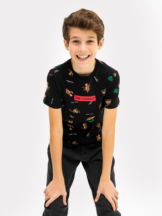 Mark Formelle ФУТБОЛКА ДЛЯ МАЛЬЧИКОВ (верхняя) 113379 113379 ленивцы на черном 7