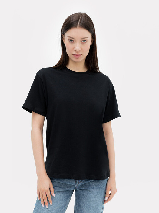 Хлопковая футболка свободного силуэта из трикотажной кулирки. Вырез круглой формы. Свободу движений гарантируют спущенная линия плеча и углубленная пройма. Рукава широкие, чуть выше локтя. Стильная модель!