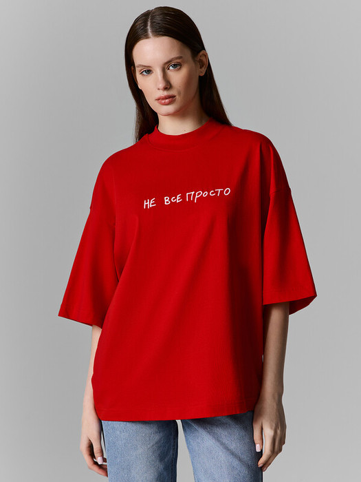 Женская футболка с вышивкой "не все просто" — это не просто вещь, а манифест настроения. Свободный силуэт из мягкой трикотажной кулирки создает ощущение легкости и комфорта, а широкая обтачка из рибаны подчеркивает округлую горловину, добавляя уверенности образу. Спущенное плечо и углубленная пройма придают модели расслабленный характер, а рукава до локтя — баланс между практичностью и стилем. Широкие подгибки по низу изделия и рукавам добавляют акцента и подчеркивают качественное исполнение. А вышитая надпись? Она будто говорит от имени самой владелицы — с легкой иронией, с глубиной и непредсказуемостью.