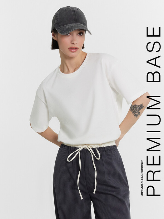 Базовая футболка от Mark Formelle – это действительно удачное вложение в женский гардероб. Круглая форма горловины и короткие рукава придают ей классический и универсальный вид. Спущенная линия плеча обеспечивает дополнительный комфорт и стиль. Выполненная из хлопковой кулирки, эта футболка гарантирует мягкость и воздухопроницаемость, делая ее идеальным выбором для повседневного ношения. Она легко сочетается с различными элементами гардероба, создавая множество стильных образов. Отличный выбор для базового гардероба!