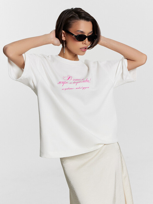 Футболка женская Mark Formelle x Ольга Бузова. Лимитированная коллекция "Мне можно все". Стильный и удобный вариант для любого повседневного гардероба! Изготовленная из мягкой и приятной кулирки, она обеспечивает комфорт и воздухопроницаемость, делая ее идеальной для теплых дней. Круглая горловина обработана обтачкой из рибаны, что добавляет аккуратности и завершенности дизайну. Спущенная линия плеча и короткие рукава создают расслабленный и современный образ, идеально подходящий для повседневных нарядов. Нижние края футболки и рукавов обработаны швом вподгибку, что обеспечивает долговечность и ухоженный вид. Такая футболка станет универсальным выбором, гармонично вписываясь в ваш гардероб и подчеркивая непринужденный стиль. Рекомендуем!