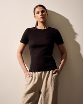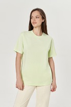 Нижние срезы футболки и рукавов обработаны швом вподгибку.