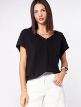 Горловина асимметричной формы, вырез на одно плечо. Обтачка верхнего среза из рибаны. Плечо слегка спущено, пройма углублена. Рукав втачной, длиной по локоть.