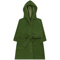 Халат с запахом, с съемным поясом, продетым в шлевки в боковых. Рукава длинные, одношовные.