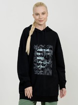 Худи выполнено из футера с начесом — плотного трикотажа с мягким внутренним ворсом. Состав из хлопка и полиэстера сочетает натуральность и прочность: хлопок обеспечивает воздухообмен и приятные тактильные ощущения, а полиэстер сохраняет форму изделия после множества стирок.