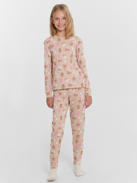 Совместные закупки Екатеринбург Детская одежда Пижамы, одежда для сна — Mark Formelle КОМПЛЕКТ ДЛЯ ДЕВОЧЕК (ДЖЕМПЕР, БРЮКИ) 567743 567743 домики на беже