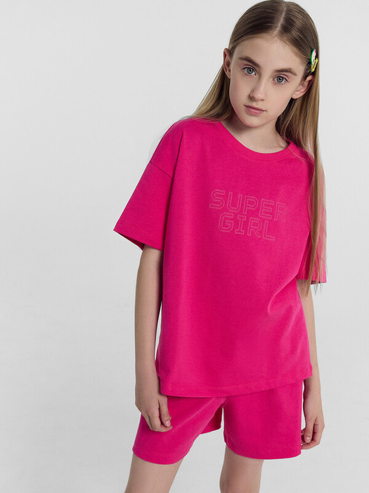 Комплект для девочек состоит из футболки и шорт.