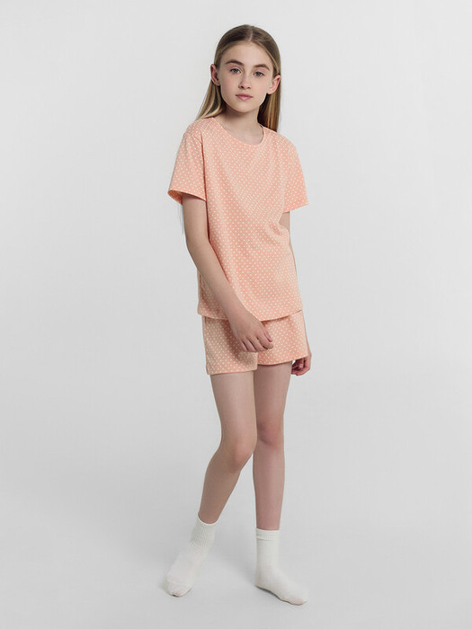 Пижама для девочек. Выполнена из трикотажной кулирки. Состоит из футболки и шортиков. Футболка свободная, с круглой горловиной, короткими рукавами. Шорты свободные, длиной до колен, пояс с эластичной тесьмой внутри. В такой пижамке сны будут действительно приятными!
