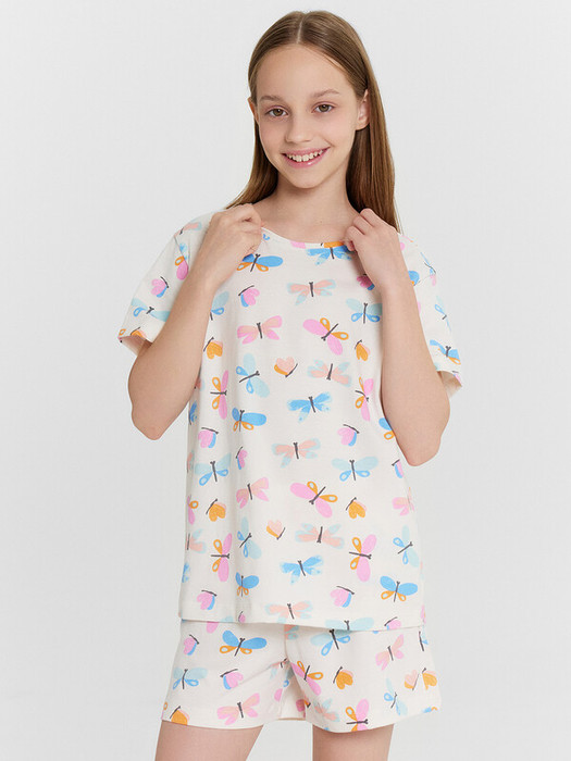 Пижама для девочек. Выполнена из трикотажной кулирки. Состоит из футболки и шортиков. Футболка свободная, с круглой горловиной, короткими рукавами. Шорты свободные, длиной до колен, пояс с эластичной тесьмой внутри. В такой пижамке сны будут действительно приятными!