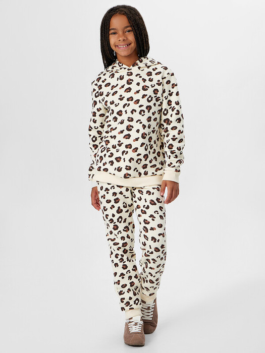 Комплект для самых модных девочек. Выполнен из трикотажного футера без подчеса. Анорак свободного силуэта с капюшоном, спущенной линией плеча, манжетами и поясом из рибаны. Брюки прямого силуэта, с резинкой и регулировочным шнурком в поясе, на манжетах. Уютный комплект!