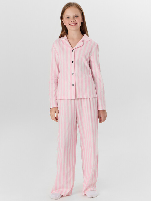 Комплект состоит из рубашки и брюк. Рубашка прямого силуэта, с отложным воротником, спинка цельнокроеная.