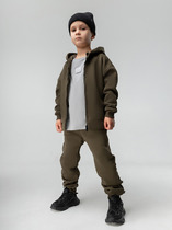 Толстовка детская свободного силуэта с капюшоном, спинка цельнокроеная. Горловина круглой формы. Капюшон двойной .  Плечо слегка спущено, пройма углублена. Низ рукава и изделия обработан в подгибку с резиной внутри 30RV. Перед с центральной застежкой на молнию.