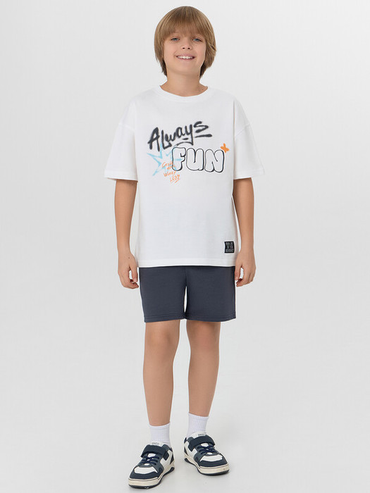 Стильный комплект для мальчиков. Состоит из футболки и шортов. Выполнен из высококачественного хлопка. Футболка прямого свободного силуэта, длиной до середины бедер, с круглой горловиной и короткими рукавами. Шорты длиной до колен или чуть выше, свободные, с боковыми карманами. В пояс из рибаны вставлен регулировочный шнур. Отличный вариант для повседневной носки, прогулок и путешествий. Широкий размерный ряд. Рекомендуем!