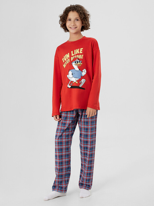 Мягкий лонгслив и практичные брюки из натурального хлопка делают его прекрасным выбором как для пижамы для мальчика, так и для повседневной домашней одежды для мальчиков.