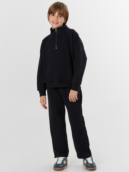 Черный спортивный костюм для мальчиков — это комфорт и практичность для активного образа жизни. Набор из свитшота и брюк-джоггеров выполнен из хлопка, который обеспечивает мягкость, воздухообмен и безопасность для детской кожи.