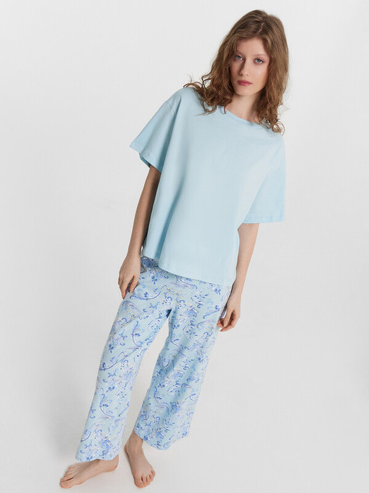 Совместные закупки Екатеринбург Женская одежда Пижамы, халаты — Mark Formelle КОМПЛЕКТ ЖЕНСКИЙ (ДЖЕМПЕР, БРИДЖИ) 592600 592600 голубой +узоры на