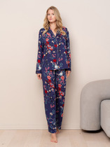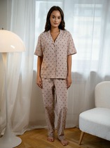 Очаровательный пижамный комплект. Состоит из лонгслива и брюк. Выполнен из хлопкового полотна. Лонгслив длиной до середины ягодиц, прямого силуэта, с круглой горловиной, слегка укороченными рукавами, спущенной линией плеча и фигурным низом. Брюки длинные, свободные. Ваш сон будет комфортным!