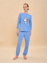 Хлопковый домашний комплект для женщин. Состоит из расслабленного лонгслива и брюк свободного силуэта. Лонгслив с круглым вырезом, длинными рукавами. Брюки прямые, с эластичной тесьмой в поясе. Рекомендуем для крепких снов и домашних дел!