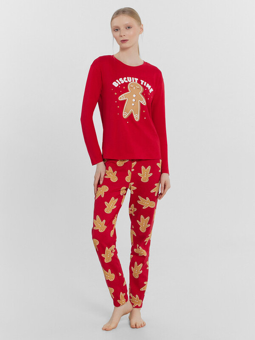 Совместные закупки Екатеринбург Женская одежда Пижамы, халаты — Mark Formelle КОМПЛЕКТ ЖЕНСКИЙ (ДЖЕМПЕР, БРЮКИ) 592510 592510 красный +печенье н