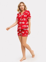 Стильная пижама женская с бриджами прямого кроя и джемпером с коротким рукавом изготовлена из высококачественного мягкого хлопка. Пижама выполнена с рисунком в виде надписи. Красивый насыщенный цвет и оригинальный рисунок делают пижамку интересной и привлекательной. Пижама с бриджами — отличный вариант женской одежды для сна, домашних дел, а также для отдыха дома. Мягкий, эластичный хлопковый материал гипоаллергенен, подойдет для нежной кожи. В линейке много интересных расцветок, широкий размерный ряд, есть актуальные модели plus-size пижам женских для девушек с пышными формами. Домашний комплект с бриджами от Mark Formelle приятно получить как подарок на праздники, так и без повода!