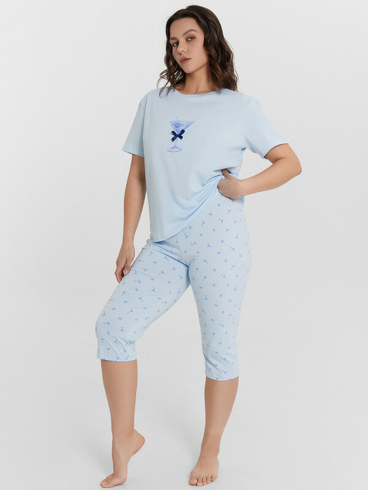 Совместные закупки Екатеринбург Женская одежда Пижамы, халаты — Mark Formelle КОМПЛЕКТ ЖЕНСКИЙ (ФУТБОЛКА, БРИДЖИ) 592370 592370 голубое небо +ко