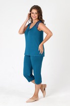Женская пижама для комфортных домашних образов включает в себя приталенную футболку с круглым вырезом горловины и короткими рукавами, а также брюки свободного силуэта с эластичным поясом и боковыми карманами. Футболка выполнена из рибаны - мягкой и эластичной ткани, отличающейся своим особым плетением, которое обеспечивает комфорт и хорошую воздухопроницаемость. Брюки изготовлены из кулирки - трикотажного материала с гладкой поверхностью, известного своей легкостью и мягкостью. Кулирка прекрасно пропускает воздух и обеспечивает высокий уровень комфорта, не стесняя движений. Благодаря своей прочности, изделия из такого материала хорошо сохраняют форму и цвет даже после многочисленных стирок. Пижама Mark Formelle - это идеальный выбор для создания уютных и стильных домашних образов.