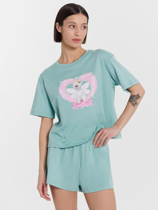 Совместные закупки Екатеринбург Женская одежда Пижамы, халаты — Mark Formelle КОМПЛЕКТ ЖЕНСКИЙ (ФУТБОЛКА, ШОРТЫ) 592536 592536 пыльная бирюза +п