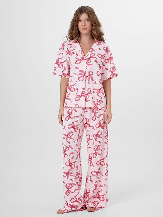 Совместные закупки Екатеринбург Женская одежда Пижамы, халаты — Mark Formelle КОМПЛЕКТ ЖЕНСКИЙ (РУБАШКА, БРЮКИ) 592554 592554 бантики на вишнево