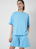 Удобный спортивный комплект из легкой трикотажной кулирки. Включает топ и шорты-велосипедки. Топ облегающего силуэта, с круглым вырезом горловины и «американской» проймой. Нижняя часть топа окантована жаккардовой эластичной тесьмой. Велосипедки облегающего силуэта, длиной до колен, с эластичной жаккардовой тесьмой в поясе. Стильно и функционально!