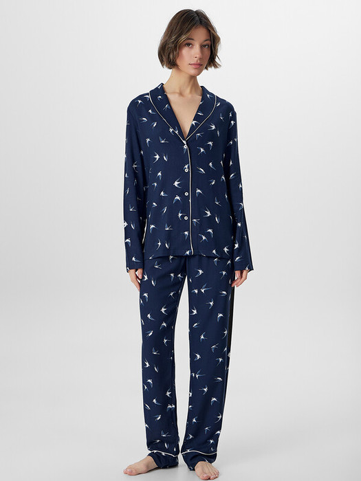 Совместные закупки Екатеринбург Женская одежда Пижамы, халаты — Mark Formelle КОМПЛЕКТ ЖЕНСКИЙ (ЖАКЕТ, БРЮКИ) 592314 592314 ласточки на синем 10