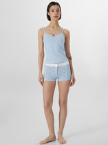 Хлопковый женский комплект актуального свободного силуэта. Рубашка прямая, с отложным воротником и лацканами, короткими рукавами, застегивается на пуговицы. Дополняют ее свободные шорты длины мини, с резиновой тесьмой в поясе и атласной тесьмой, которая завязывается на бантик. Особенность модели – контрастные канты на рукавах, воротнике и передней части рубашки. Рекомендуем для сна, отдыха и домашних дел!